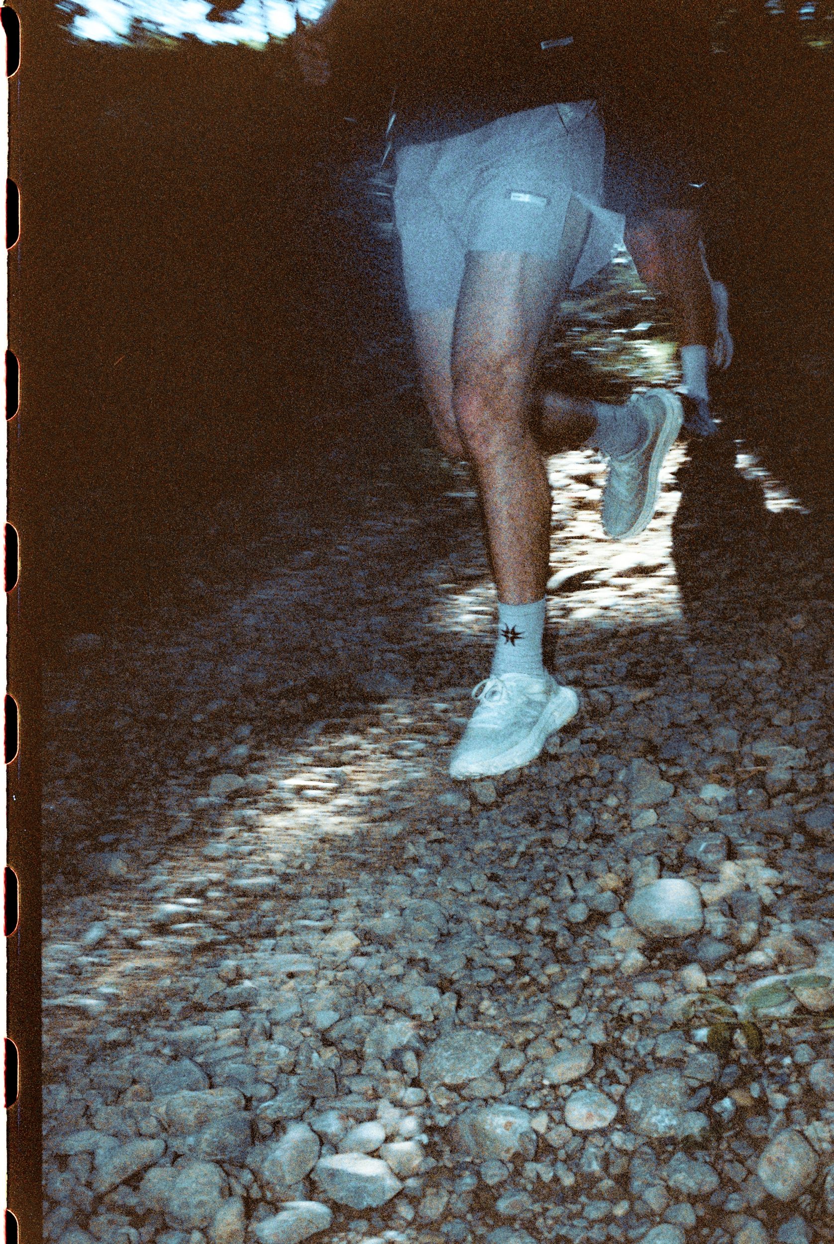 Tag 3: Wir folgten dem Flusslauf bergauf, um uns in einem Alpenfluss abzukühlen – dabei behielten wir mit unseren Salomons sicheren Halt auf den rutschigen Steinen und landeten nicht im Wasser.