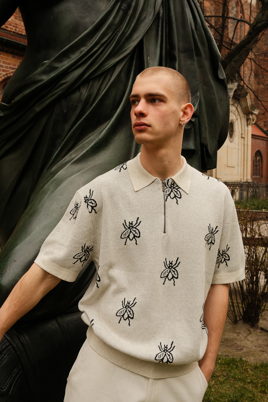 The brand’s blog section chronicles the friends, family, and places that inspire the brand, including articles like “Strange Portraits,” a gallery of street style photographs featuring members of the HERESY community, “Druid’s Temple,” a photo set of a prehistoric stone monument in North Yorkshire, and “Arcadia,” a project of archived clips that explores British people’s shifting relationship with nature.