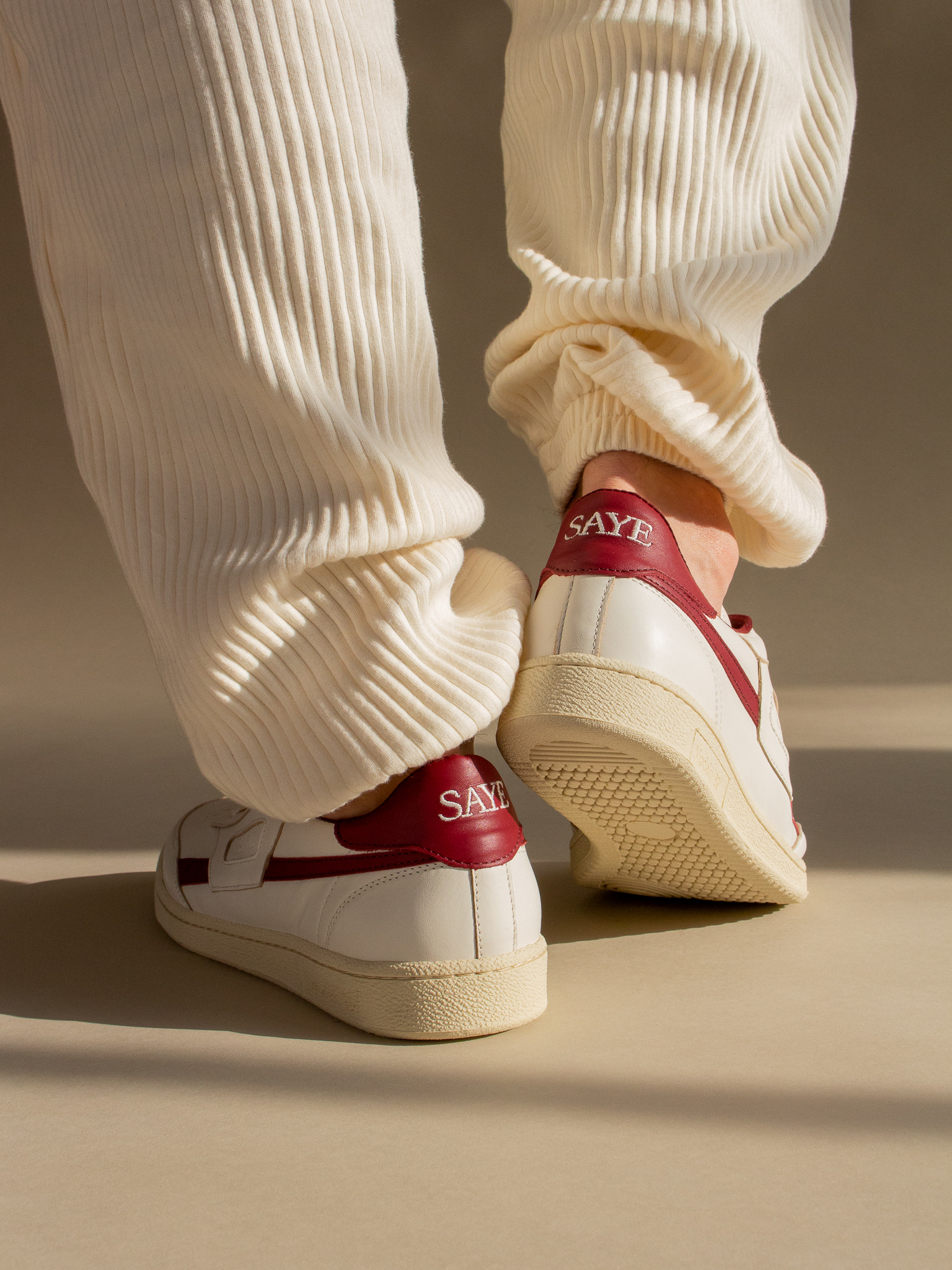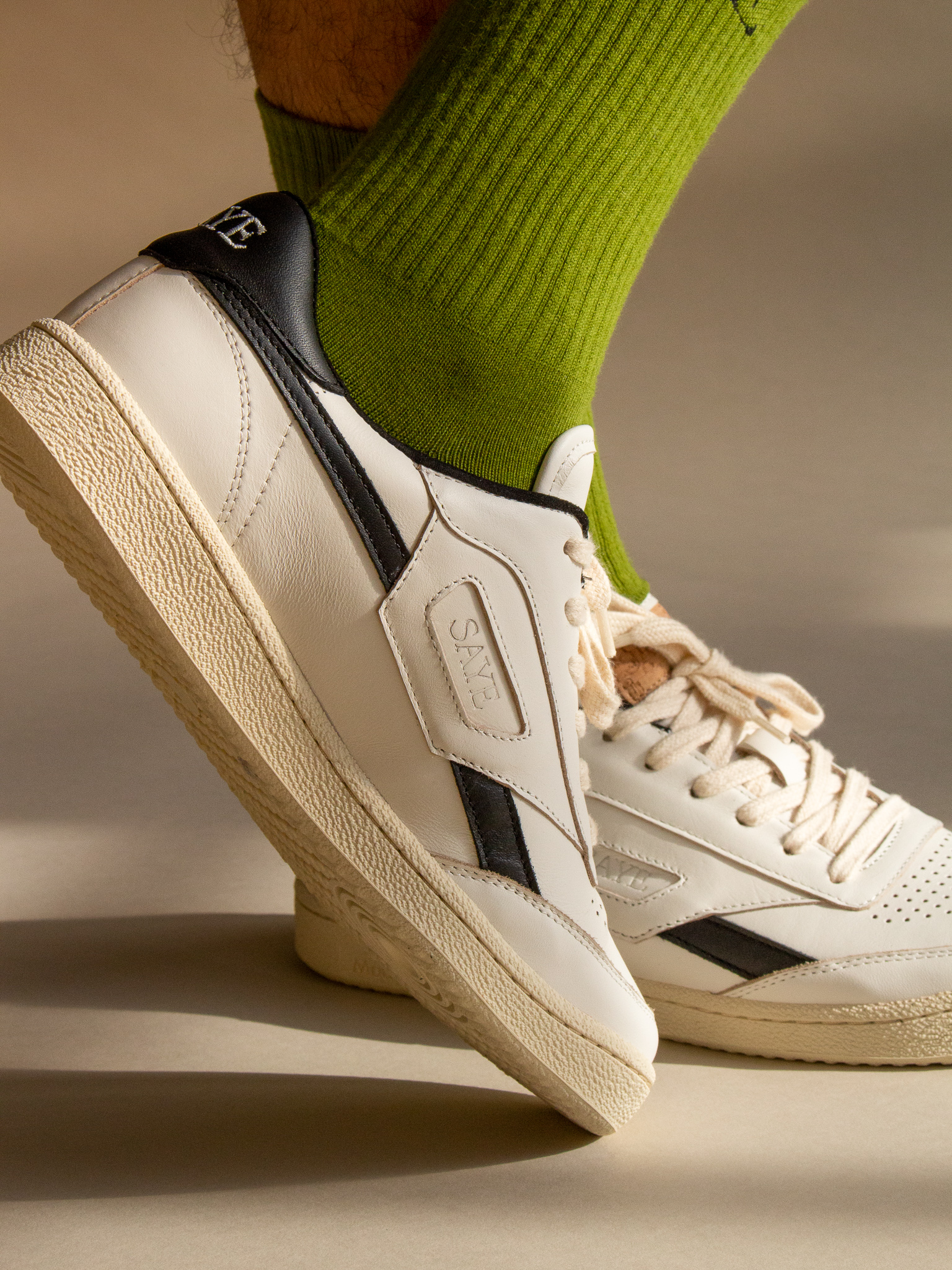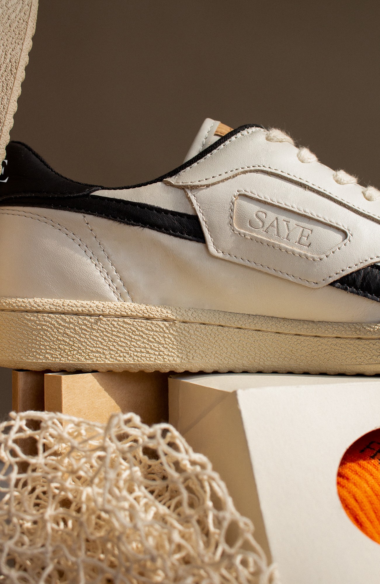 You can probably guess it already, but SAYE doesn’t just choose any materials from their surrounding area. Quality is key. After all, your new shoes should make you happy for as long as possible. The leather, which comes from happy European cows, has been certified by the Leather Working group (LWG). SAYE only uses material that is left over from meat production anyway. Most vegan leather alternatives are still made of plastic and therefore not degradable. On top of that, however, there is also the “Not just Vegan” range made from recycled vegan leather. In order to do something good for the environment, the laces, lining, insole and box are mostly made of recycled materials.