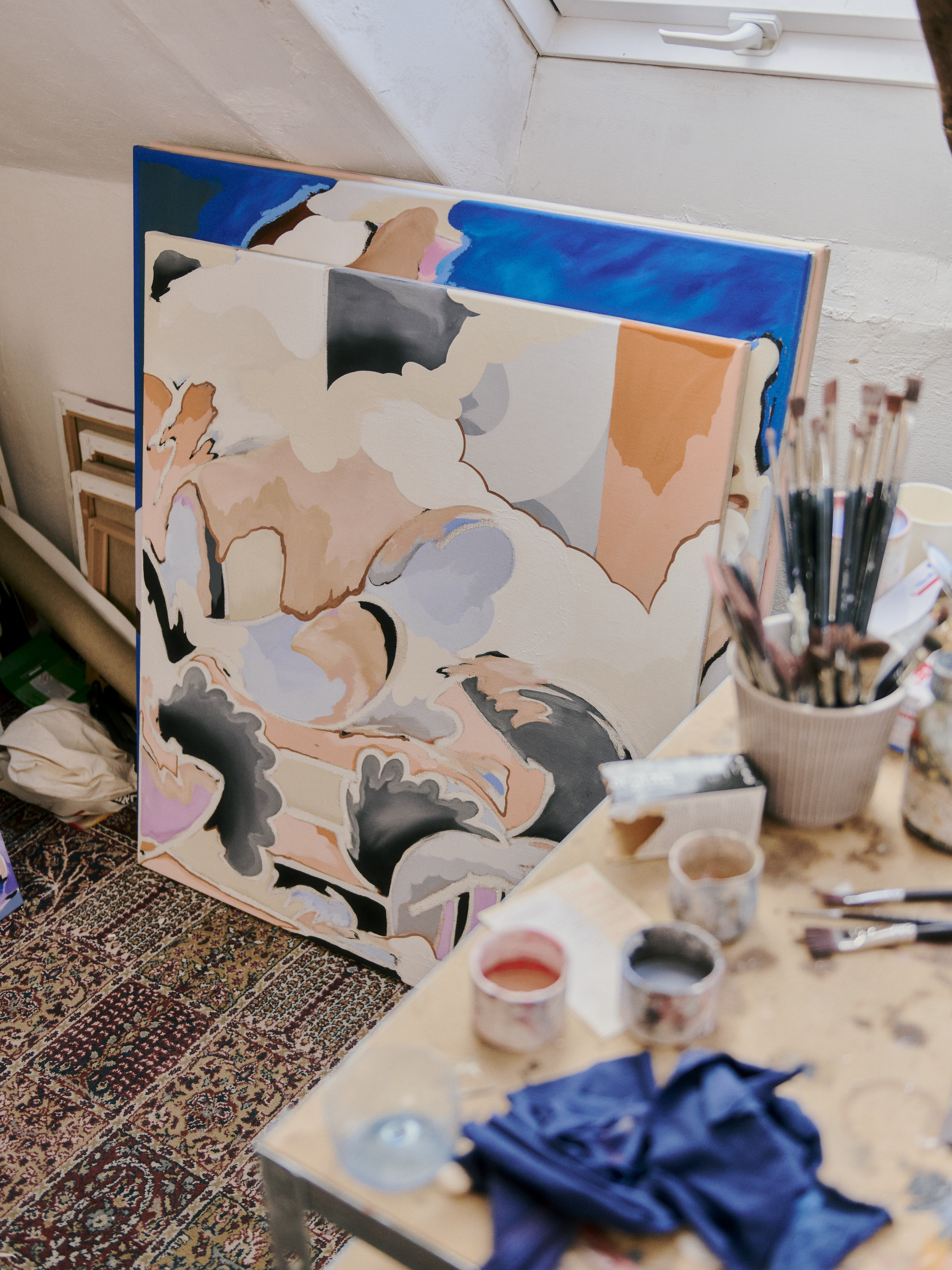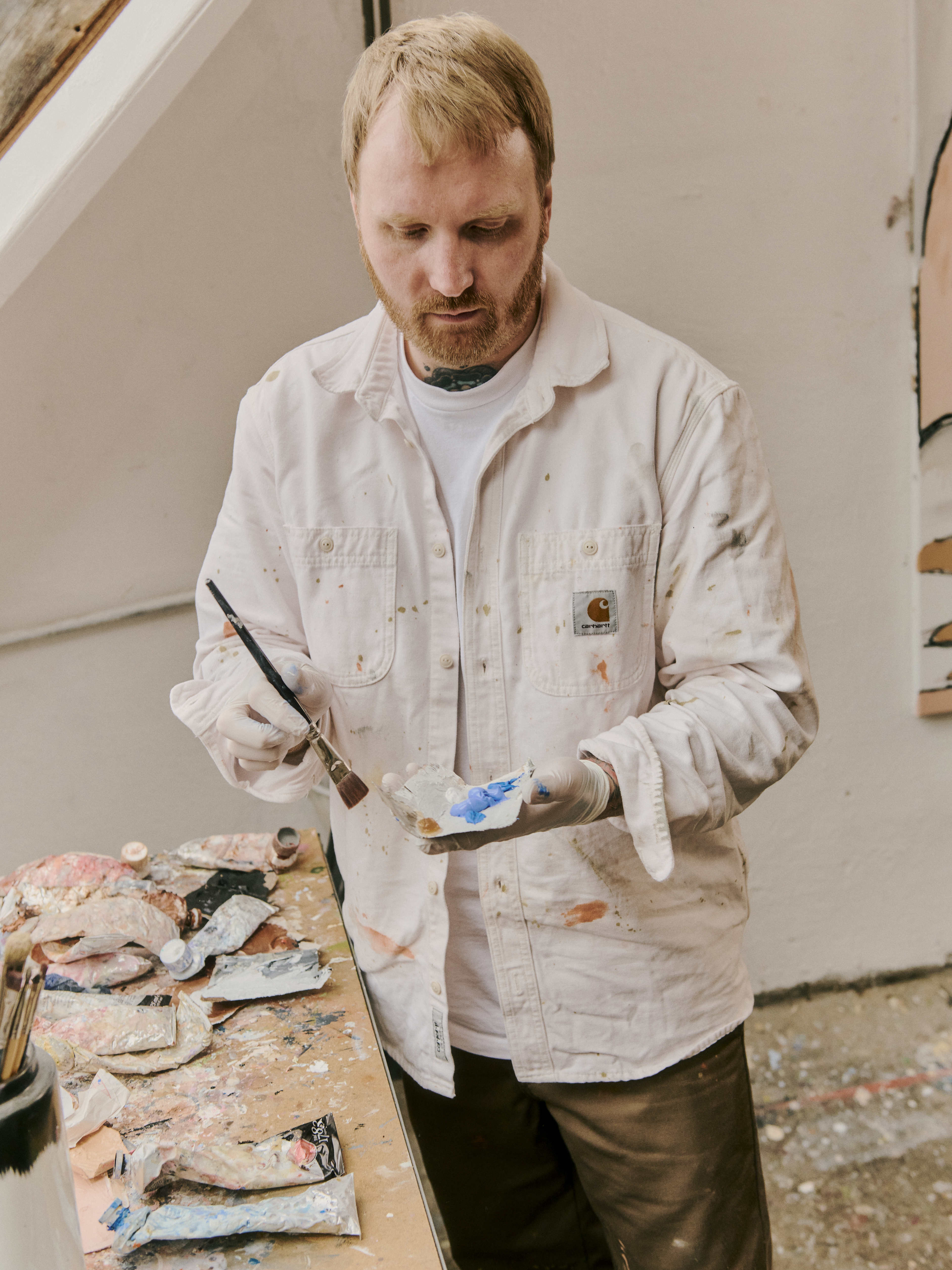 HHV and Carhartt WIP visited the colorful studio of Berlin artist Jonas Koch. His paintings are full of playful and bright shapes that bring thoughts and feelings to life in a unique way.